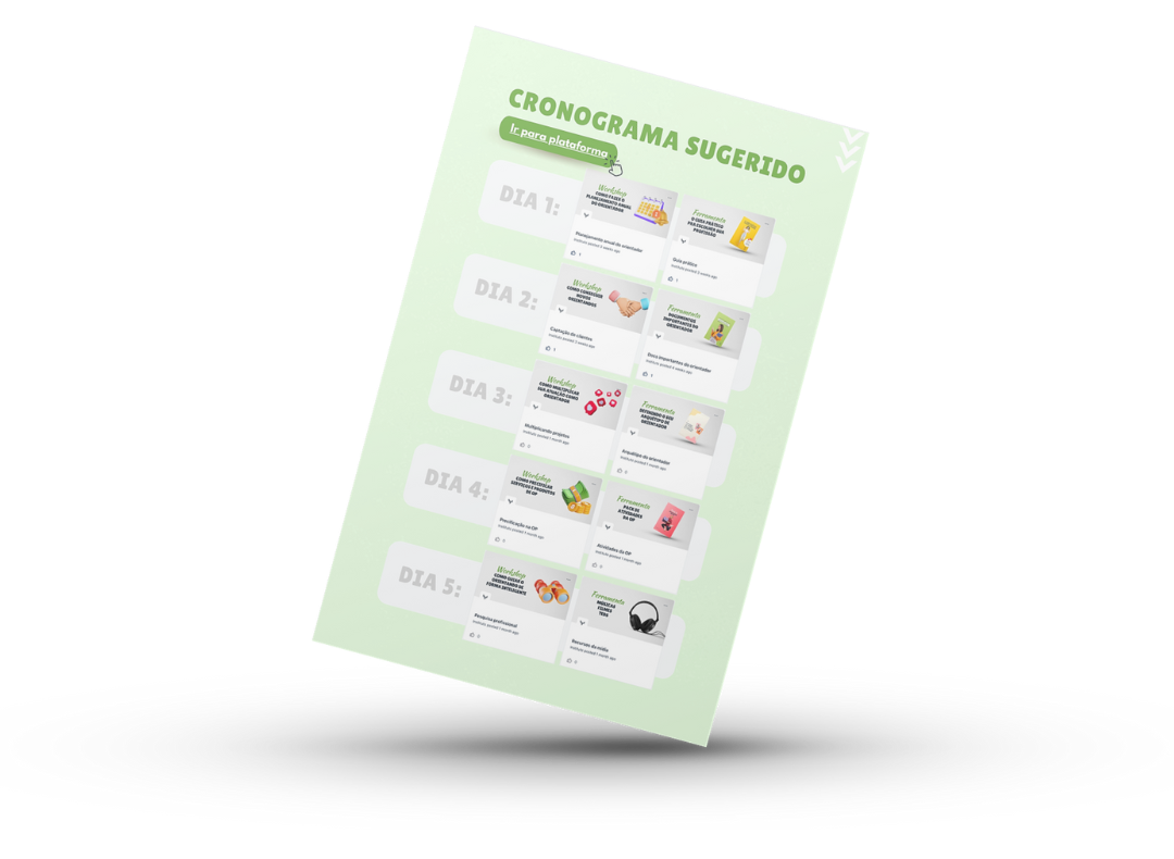 Ao acessar o trial, nós te recomendamos um cronograma de acesso aos conteúdos, pra não ter o risco de você se sentir perdido.